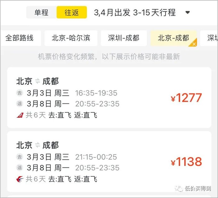北京往返成都,如果明年3、4月份出发,现在购票最便宜含税1238元,如果用深航盲盒兑换到,立省738元(1238-500)!